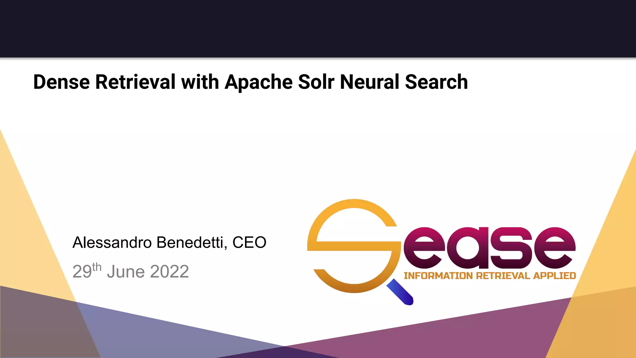 This document provides an overview of dense retrieval with Apache Solr neural search. It discusses semantic search problems that neural search aims to address through vector-based representations of queries and documents. It then describes Apache Solr's implementation of neural search using dense vector fields and HNSW graphs to perform k-nearest neighbor retrieval. Functions are shown for indexing and searching vector data. The document also discusses using vector queries for filtering, re-ranking, and hybrid searches combining dense and sparse criteria.