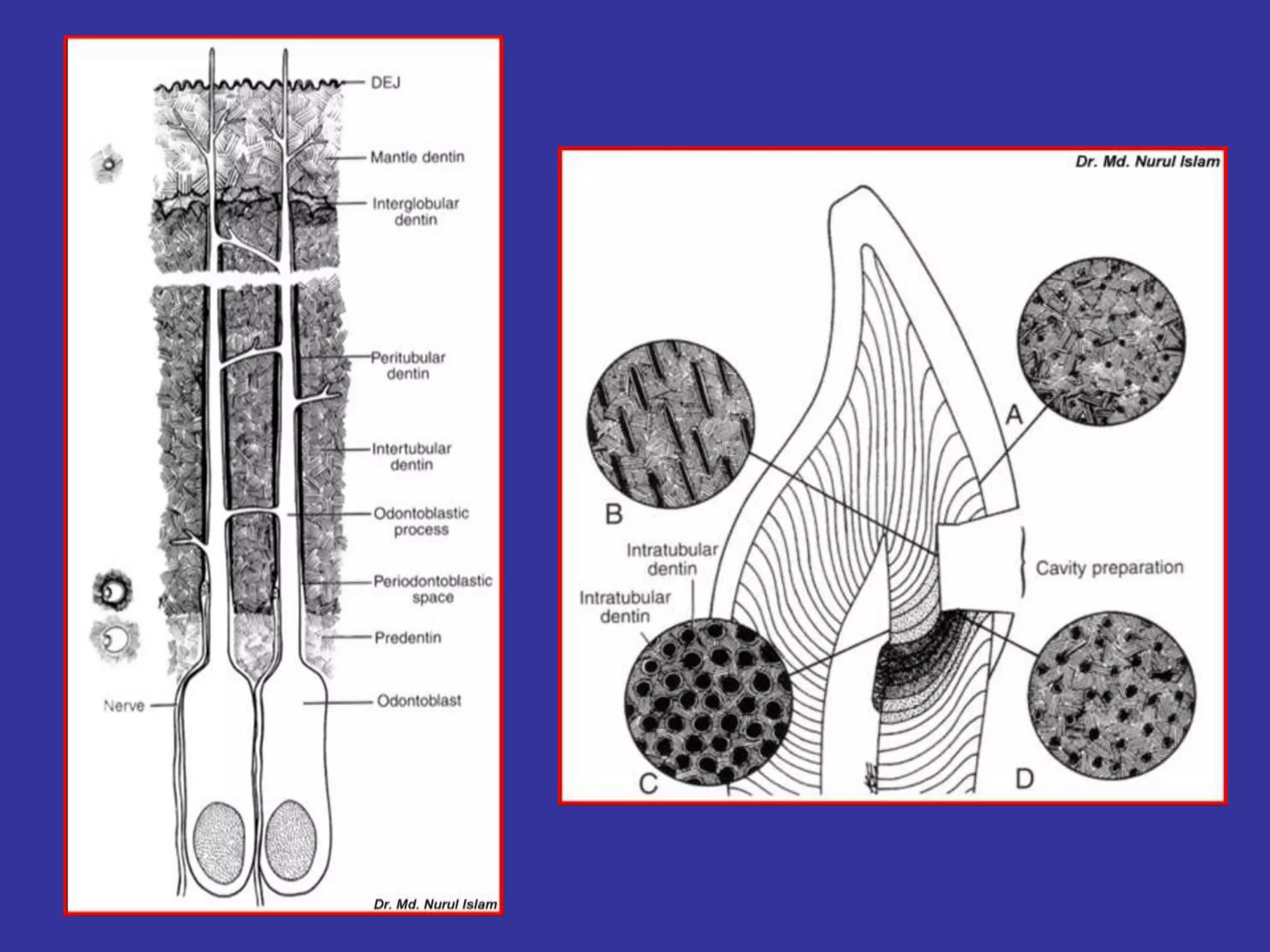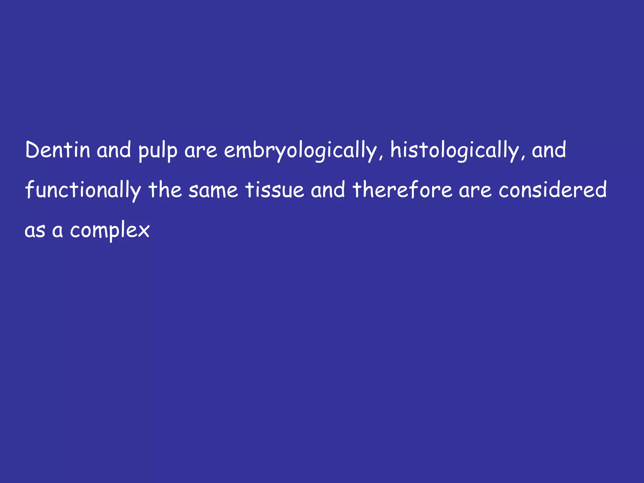The document summarizes key aspects of the dentin-pulp complex. It describes how dentin and pulp have a common embryonic origin and are considered a single functional unit. It outlines the different types of dentin that form over time, including primary, secondary, and tertiary dentin. It also discusses the roles of odontoblasts and dentinal tubules. In less than 3 sentences, the document provides an overview of the embryological, histological, and functional relationship between dentin and pulp as a complex unit that forms over the life of a tooth.