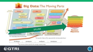 The document provides an overview of Global Technology Resources, Inc. (GTRI) and its partnership with Splunk, highlighting GTRI's role as a premier certified training center and its capabilities in big data analytics. It details the scalability and performance of Splunk's solutions, especially in conjunction with NetApp's e-series storage, and showcases use cases from various industries including transportation, public sector, and technology. Additionally, it emphasizes the importance of real-time data processing and efficient data management for improving business operations in organizations like Cisco and Ticketmaster.