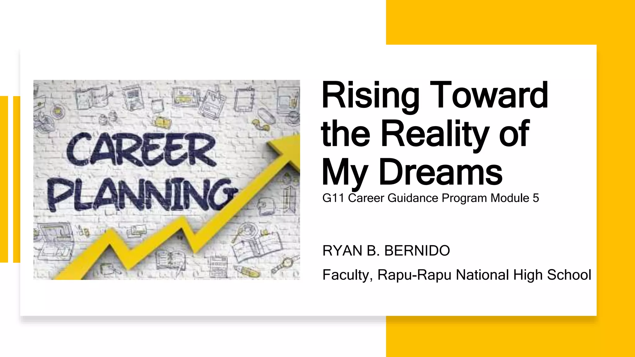 The document outlines a career guidance program focused on self-assessment of skills and abilities to make informed career decisions after senior high school. It emphasizes the importance of both hard and soft skills, advocating for the development of a positive attitude and interpersonal traits for long-term success in the workplace. Additionally, it discusses the significance of a well-crafted resume as a marketing tool in the job search process.