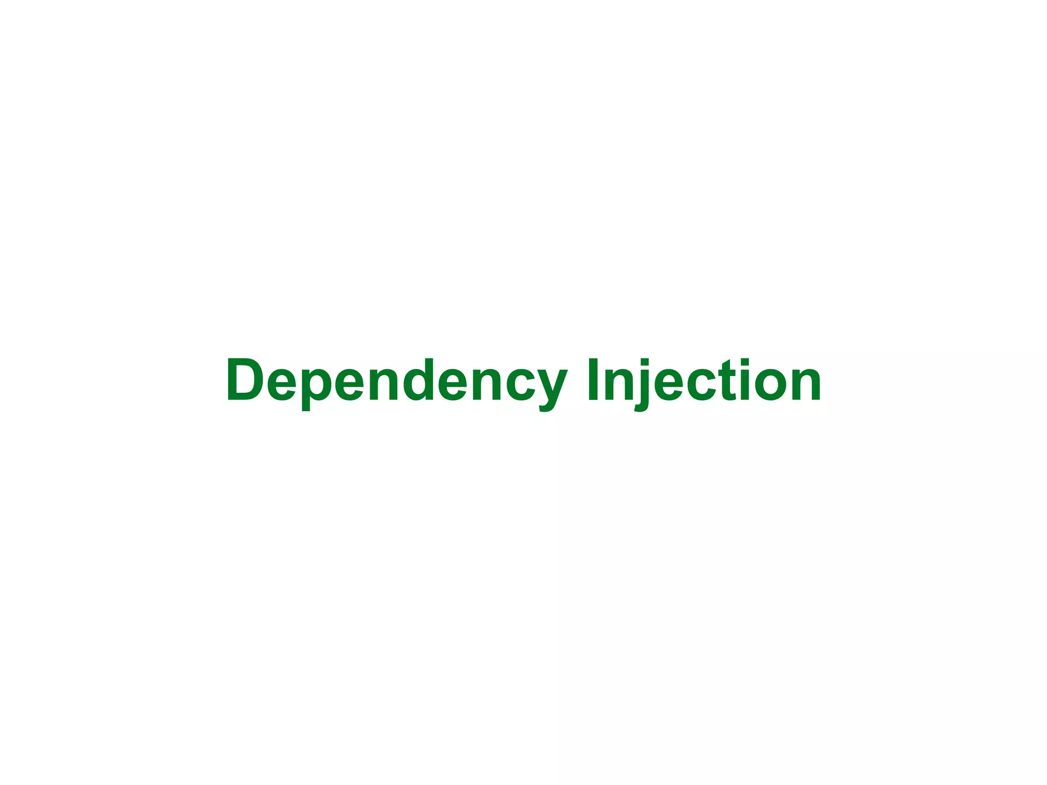 The document discusses dependency injection (DI) practices in programming, illustrating concepts through examples such as spellchecking and email sending services. It outlines various DI frameworks, testing strategies, and design principles like the open-closed principle, emphasizing the importance of decoupling and modularity. The text also explores client factory services, scoping, and the integration of AOP with DI to enhance software architecture.