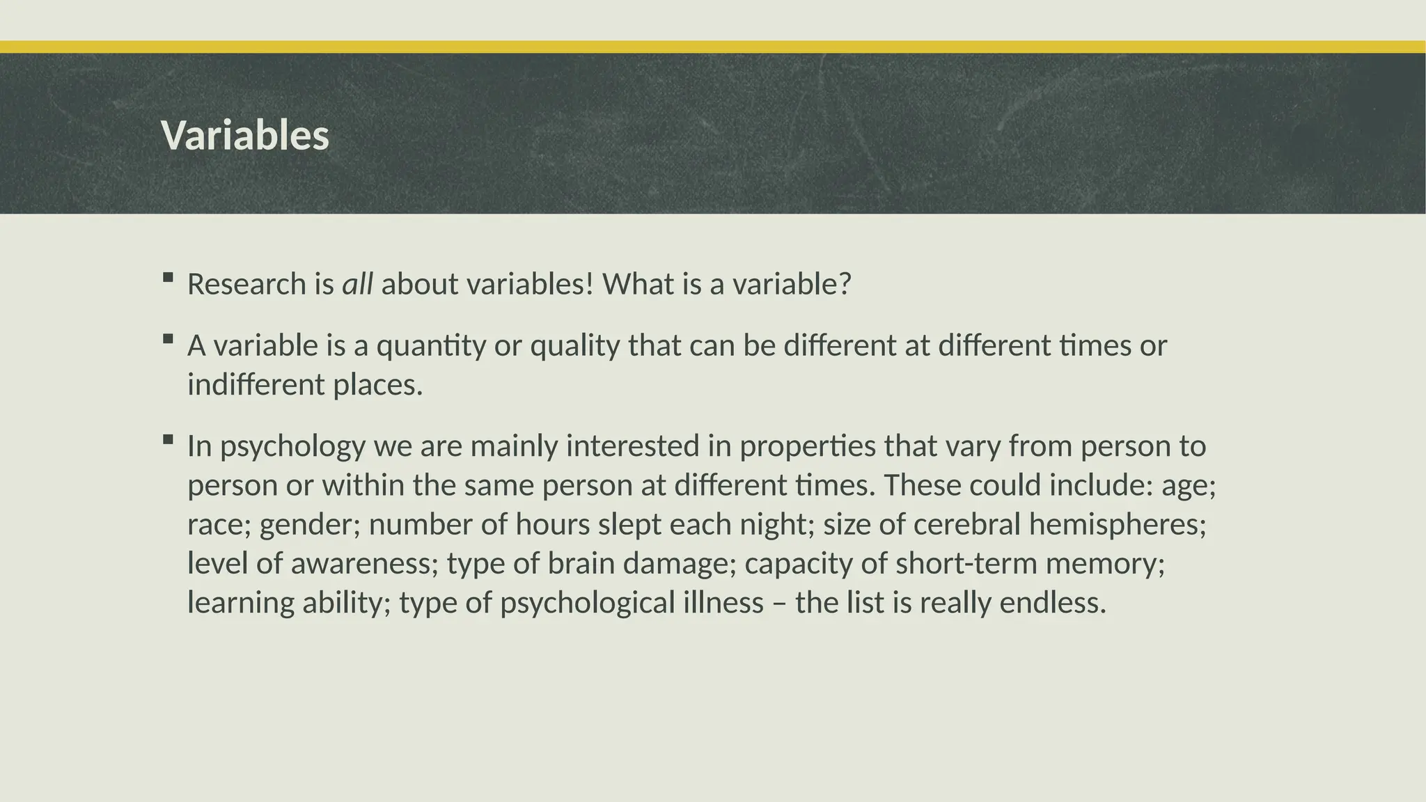 The document discusses the importance of variables in psychological research, outlining key concepts such as independent and dependent variables, and how they are measured and operationalized. It contrasts quantitative and qualitative research approaches, highlighting their methods, strengths, and weaknesses in obtaining and analyzing data. Additionally, the document emphasizes the goals of the scientific method and the significance of clear hypotheses in conducting meaningful research.