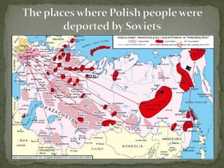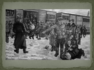 World War II began on September 1, 1939 when Germany invaded Poland. On September 17, the Soviet Union invaded Poland from the east, dividing the country between Germany and the USSR. The Soviets captured 250,000 Polish prisoners of war, most of whom were denied legal status. Between 1939-1941, the Soviets arrested and imprisoned 500,000 Poles, with at least 150,000 dying. The Soviets also deported over 1.2 million Poles in four waves between 1940-1941, sending them by cramped train to remote parts of the USSR, where many died during the difficult journey or from harsh treatment and living conditions.