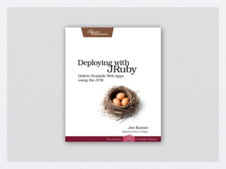 1) The document discusses using JRuby to deploy and scale Ruby applications. JRuby runs Ruby code on the Java Virtual Machine (JVM), allowing for features like deployment automation, background jobs, and clustering.