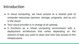 The document discusses the different deployment models of cloud computing: