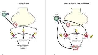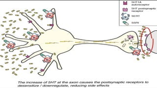 Major depressive disorder is a common and often recurrent mental disorder characterized by low mood, loss of interest, and feelings of guilt or low self-worth. It results in significant disability and increased mortality risk. Depression is caused by genetic, environmental, and medical factors that impact neurotransmitter levels and brain structure. Antidepressants work to correct neurotransmitter imbalances and include TCAs, SSRIs, SNRIs, atypicals, and MAOIs. TCAs were the first generation but cause more side effects, while SSRIs are now first-line due to fewer side effects. All antidepressants aim to increase serotonin, norepinephrine, and/or dopamine levels to alleviate symptoms of depression.