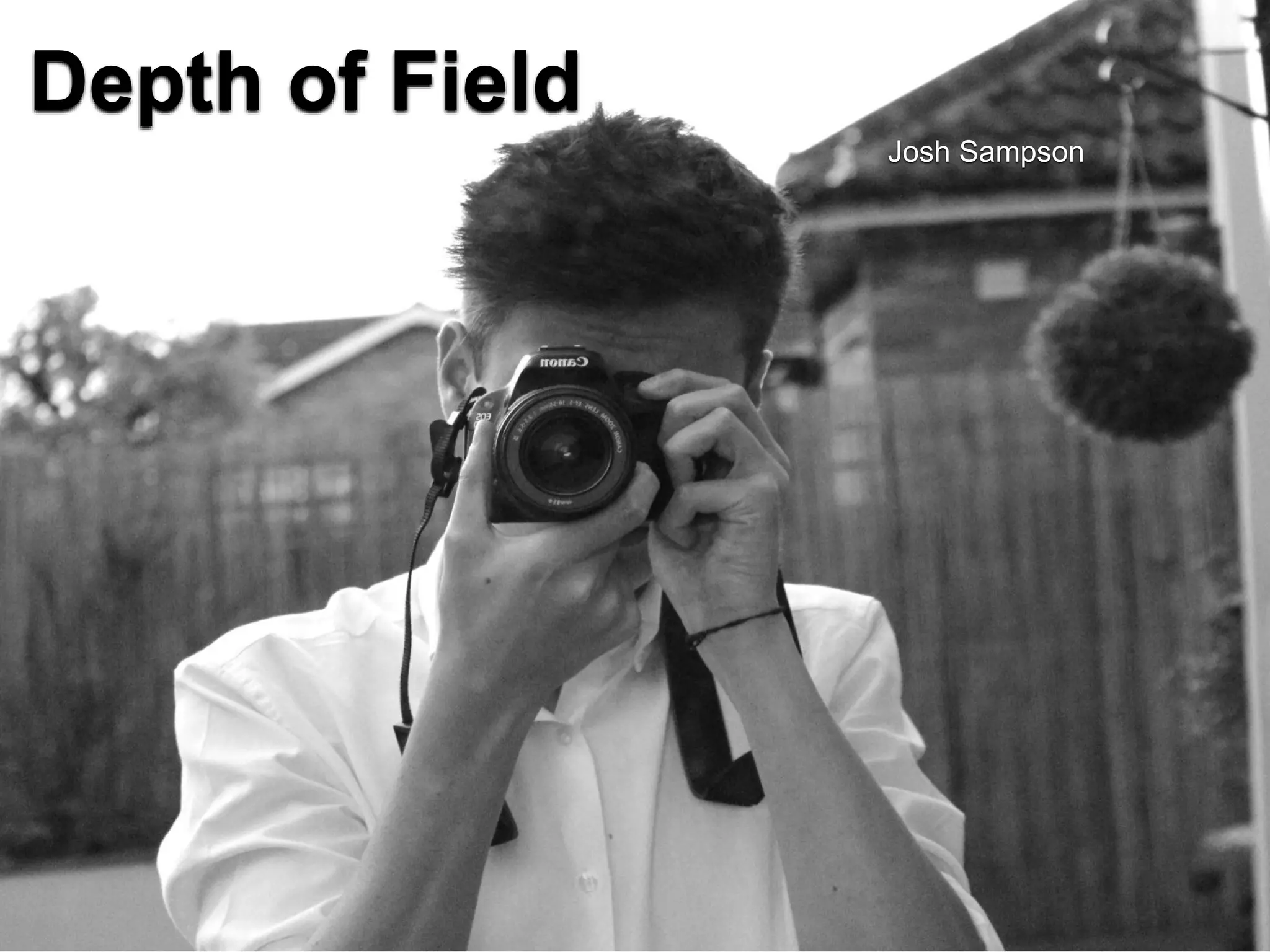 This document compares photos taken with different f-stop settings to demonstrate how depth of field changes. Photos with a lower f-stop like f/4 have a shallow depth of field so the background is blurry, while higher f-stops like f/25 provide a greater depth of field where the entire photo is in focus.