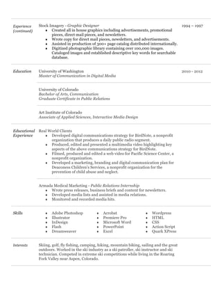 Derek Walker is a digital media specialist with over 16 years of experience in design, video production, and digital content creation. He currently works as a video production specialist for the City of Everett, where he shoots and edits promotional videos. He also owns his own digital media design business, where he provides services such as website design, branding, and social media content creation for small businesses. Walker has a Master's degree in Digital Media and backgrounds in graphic design, public relations, and the ski industry.