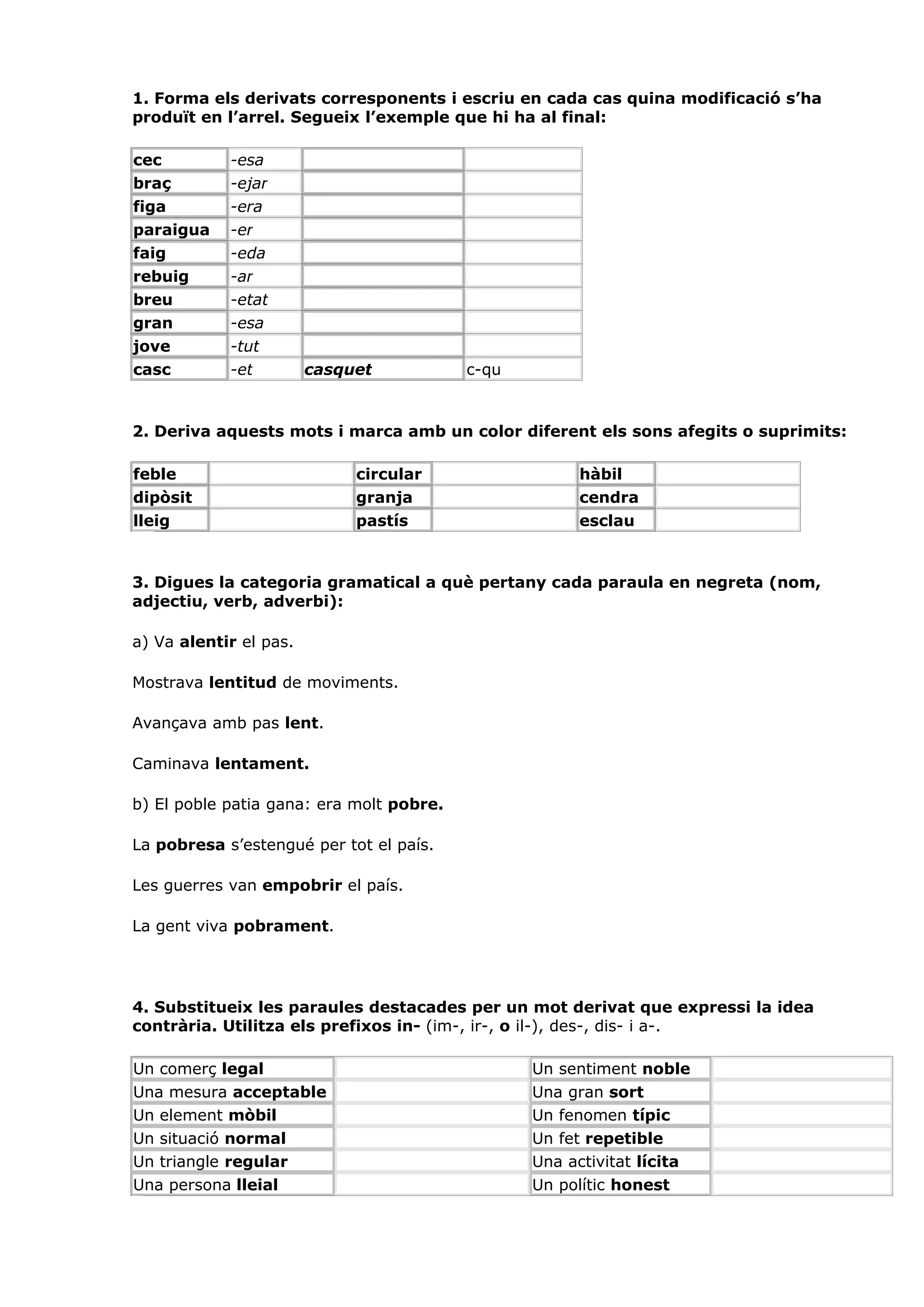 4. Substitueix les paraules destacades per un mot derivat que expressi la idea