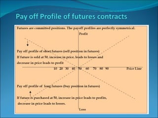This document provides an introduction and overview of derivatives, including their history, types, and uses. It discusses futures, forwards, and options contracts. Futures are exchange-traded standardized contracts that require daily margin payments and settlement. Forwards are over-the-counter customized contracts that involve credit risk. Options provide the right but not obligation to buy or sell an underlying asset at a specified price on or before expiration. The document defines call and put options and explores factors that influence option pricing.