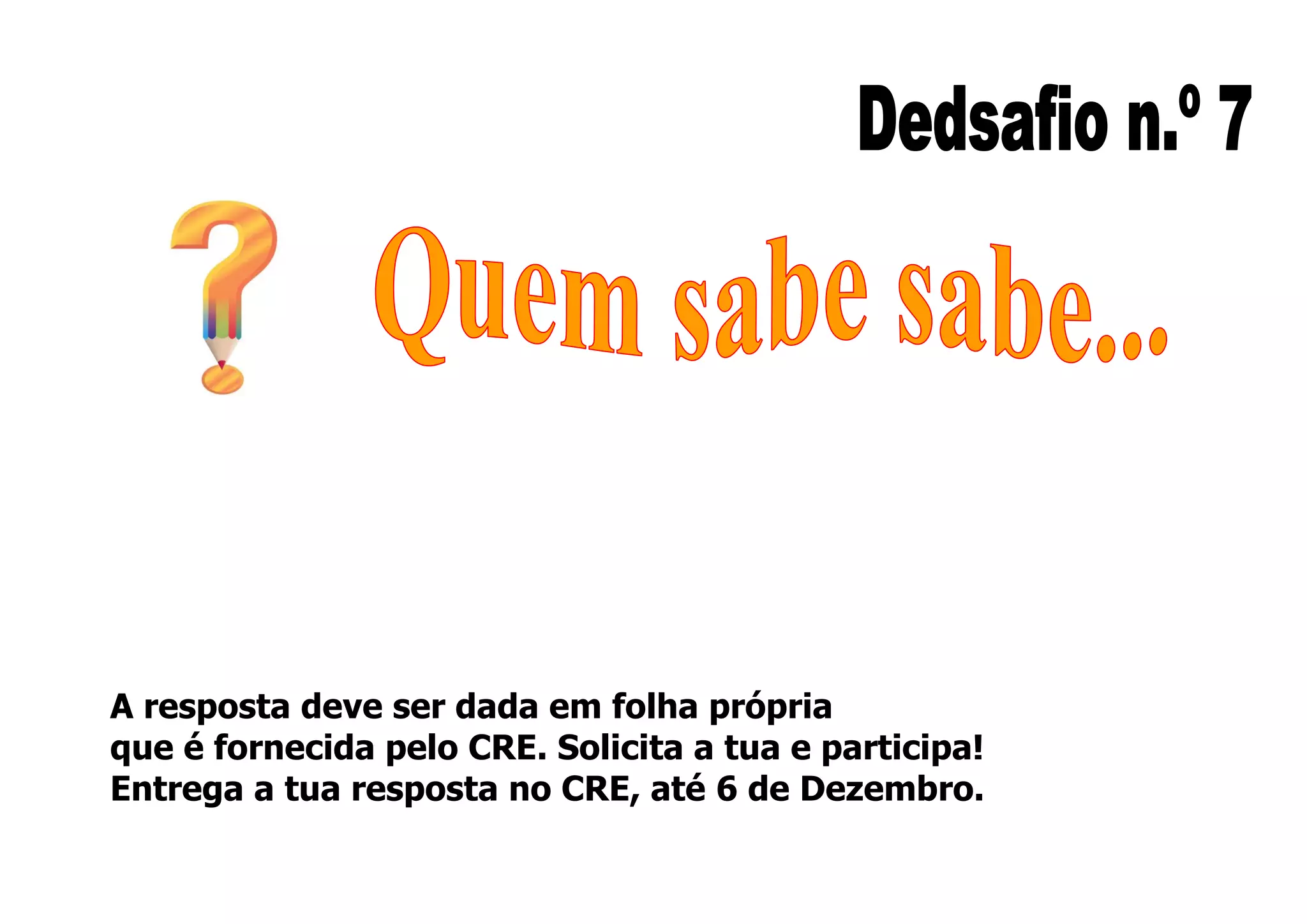 O documento fornece instruções para um teste ou prova, pedindo aos estudantes para responder em uma folha fornecida pelo CRE e entregar suas respostas até 6 de dezembro. Ele contém várias perguntas de múltipla escolha sobre tópicos como agricultura, tempo atmosférico, biologia e cores.