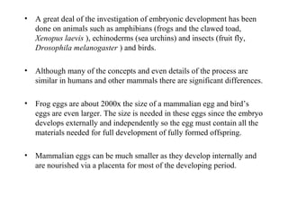 1) Early mammalian embryonic development involves cleavage divisions that result in a solid ball of cells called a morula.