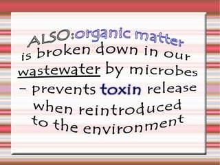 The document discusses the biodegradation process carried out by microbes, particularly in specific temperature ranges and in the presence of organic matter, releasing heat and gases. It provides degradation timelines for various materials, noting how long items like plastic bags, paper, and orange peels take to decompose. Additionally, it highlights the role of microbes in processing xenobiotic compounds released by industries, along with methods of chemical modification and genetic material utilization.