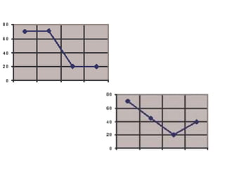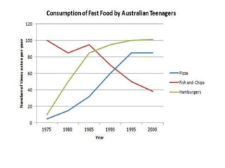 The document discusses describing tables, charts, graphs and trends. It provides examples of describing trends in line graphs using different verbs, adjectives and adverbs. It also discusses the structure of describing a single line graph, including using a three-phase structure of introduction, body and conclusion. Vocabulary and connective words to use when describing graphs and trends are also outlined.