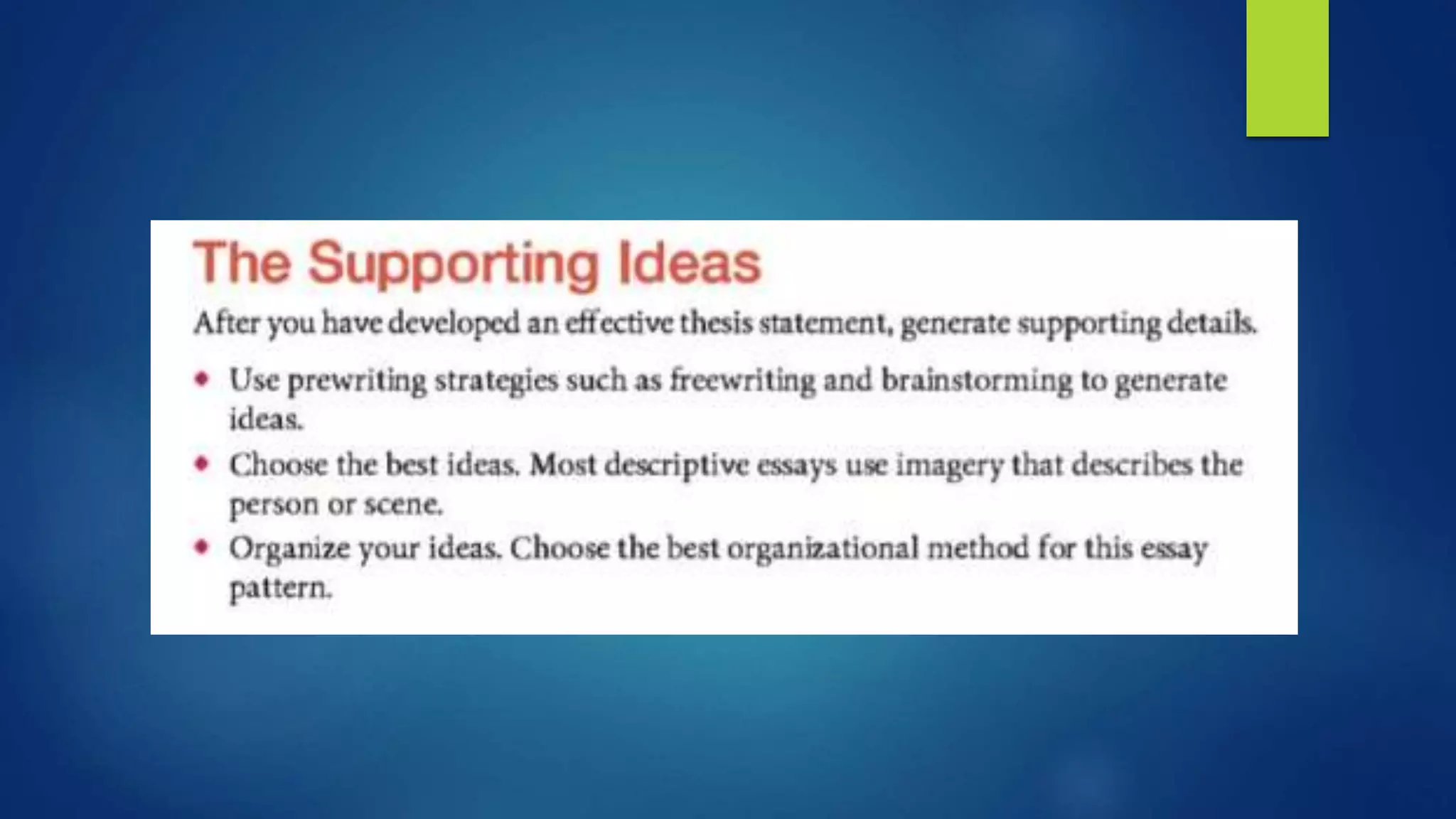This document provides guidance on writing a descriptive essay. It explains that description aims to vividly depict a place, object, character, or group using sensory details. When writing descriptively, authors should create a dominant impression, include their attitude and concrete details. They should show rather than tell by focusing on the five senses. The document also provides tips for planning, drafting and revising a descriptive essay such as focusing on sights, sounds, smells, tastes and textures to develop a vivid impression for the reader.