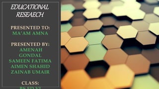 The document discusses two types of educational research: descriptive research and survey research. Descriptive research aims to describe characteristics of a population or phenomenon and focuses on "what" rather than "why". Survey research involves collecting data through surveys or questionnaires. Key points covered include characteristics and methods of descriptive research such as observational studies and case studies; examples of descriptive research topics; advantages and disadvantages. Survey research types like cross-sectional and longitudinal surveys are defined, as are their purposes, uses and steps in conducting survey research.