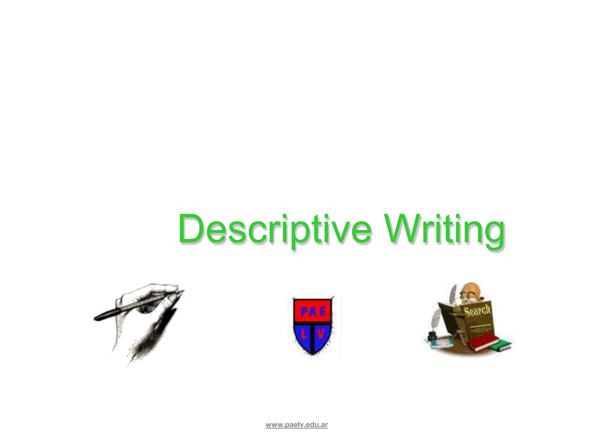 The document provides guidelines on writing descriptive paragraphs, emphasizing the importance of sensory details and organization. It outlines the structure of a descriptive paragraph, including the topic sentence, supporting details, and closing sentence, as well as offering examples to illustrate these concepts. Additionally, it includes tips for describing people, their appearance, and character through specific adjectives.