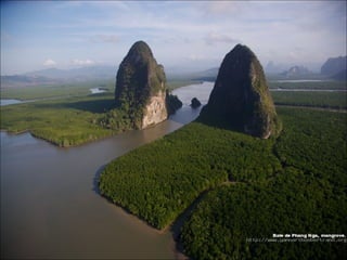 The document contains photos of two locations: Riviere La Leona in Patagonia, Argentina and the Abu Simbel Temples on Nasser Lake in Egypt. Both photos show scenic landscapes from the sky with geological features visible.