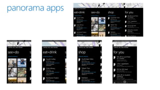 This document provides information on Windows Phone design principles and capabilities including: