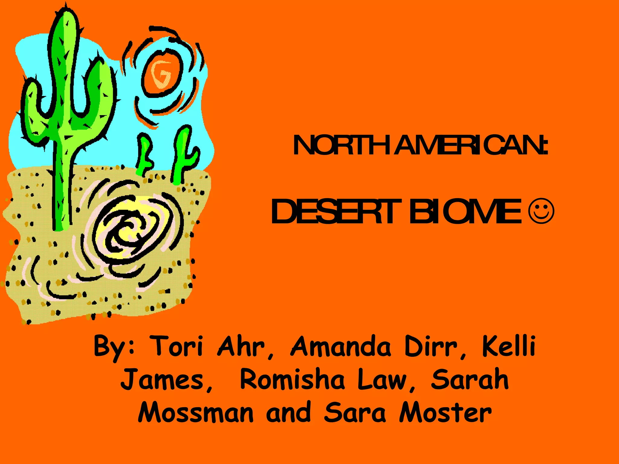 The document summarizes key aspects of the desert biome in North America. It describes the location of deserts in areas with a rain shadow effect from mountain ranges. Climate is characterized by low annual precipitation between 9-11 inches and temperatures that range from -4°F to 120°F. Common desert plants include cacti, shrubs and trees with adaptations like needles and thick stems to reduce water loss. Many animals are nocturnal or crepuscular to avoid the heat and have bodies adapted to storing water and surviving food shortages. Large cities like Phoenix and Las Vegas are experiencing population increases in these desert regions.