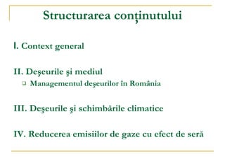 Documentul abordează educația pentru mediu în contextul schimbărilor climatice, punând accent pe managementul deșeurilor în România și impactul acestora asupra mediului. Se discută despre responsabilitățile legate de reciclare, precum și despre importanța reducerii emisiilor de gaze cu efect de seră prin diverse metode de gestionare a deșeurilor. De asemenea, sunt prezentate activități educaționale menite să dezvolte cunoștințe și abilități în domeniul reciclării și al poluării.