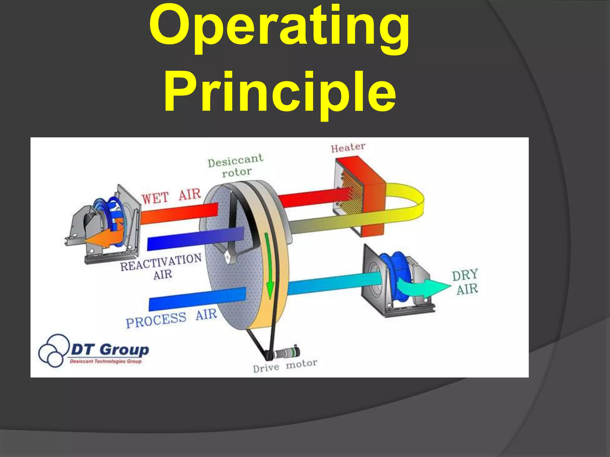 The document provides technical data on desiccant dehumidifiers, outlining two operating principles. It also includes a link for purchasing and additional information. For further inquiries, contact the manufacturer directly via their website.