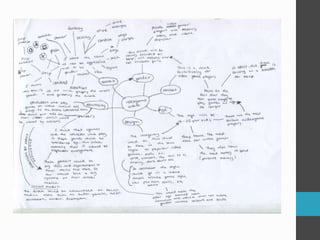 The document provides initial ideas for developing different energy drink concepts. It discusses four potential drink ideas: a sports drink targeting ages 30-40, a music festival drink for ages 16-20s, a natural/eco-friendly drink for ages 18-29, and a protein drink for bodybuilders. For each, it outlines the product details, target market, packaging, colors, and names. It then explores development of a video game themed drink, testing fonts, color schemes, and advertising approaches based on popular games like GTA and Call of Duty. The goal is to design energy drinks targeting different demographic segments through themes and styles associated with their interests.