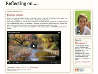 The document discusses designing e-learning and outlines six themes for 21st century learning: 1) personalize learning, 2) deliberately diversify, 3) put knowledge to work, 4) rethink roles, 5) continue to learn, and 6) connect with community. It emphasizes using technologies to support these themes, such as giving students personal choice in learning, supporting diversity, making learning authentic, having students and teachers create knowledge together, supporting ongoing learning and inquiry, and connecting with families and experts. The document advocates considering how to apply these themes when designing e-learning.