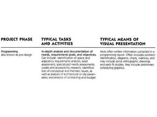 The document discusses the distinction between architecture and building, emphasizing that architecture is a designed response to human needs incorporating utility, structure, and aesthetics. It highlights the importance of education in architectural design, particularly through project-based learning, which encourages interdisciplinary approaches and problem-solving. Additionally, it outlines the roles and responsibilities of architects as licensed professionals who transform concepts into constructive plans.