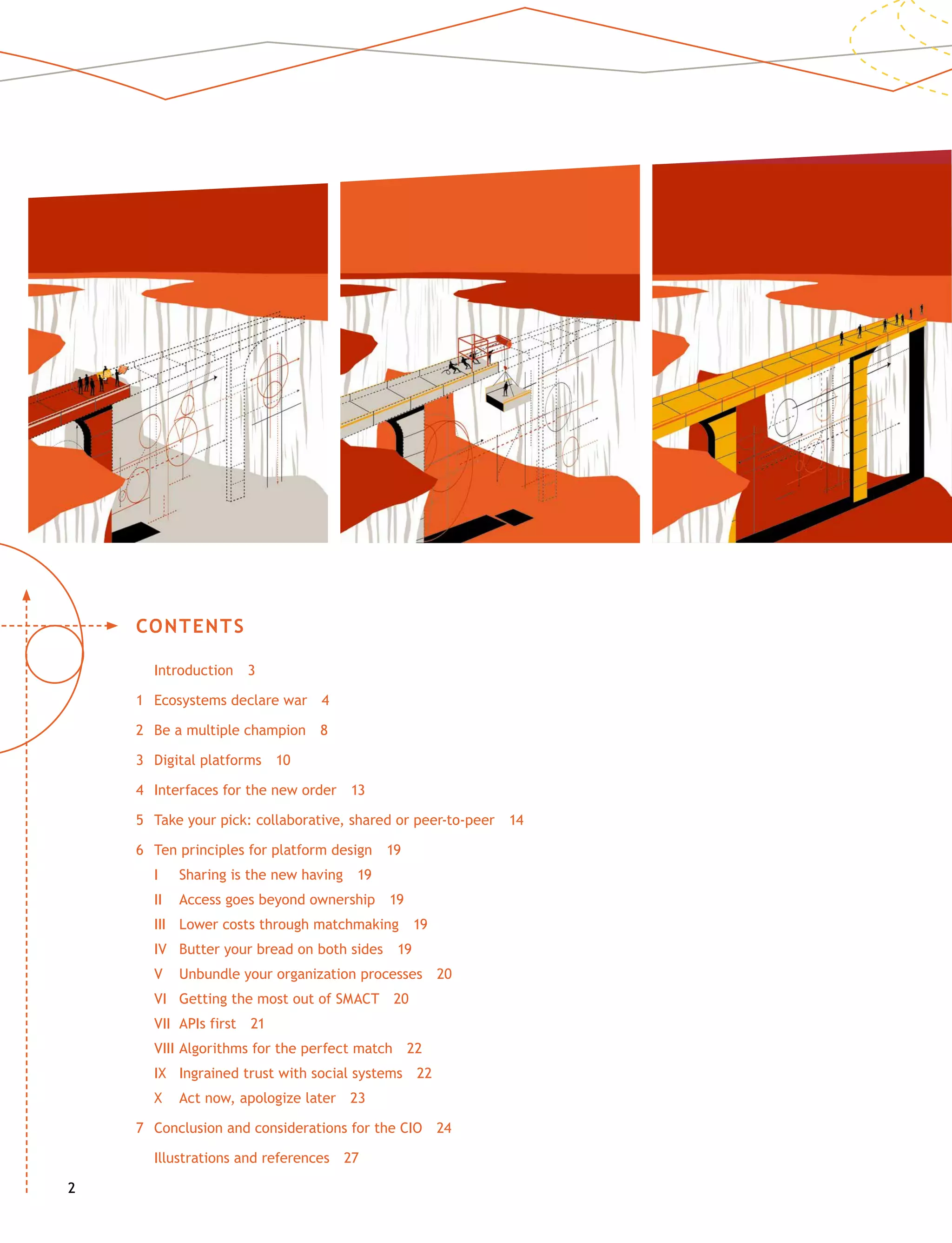 This document discusses new digital competitors that are challenging established organizations. It outlines 10 design principles of successful digital platforms, including: unbundling organization processes; using APIs; building trust through social systems; and acting quickly without authorization. The conclusion appeals to CIOs to take a proactive "Leading Digital" approach to map out technological strategies using APIs that can add business value and distinguish their organizations.