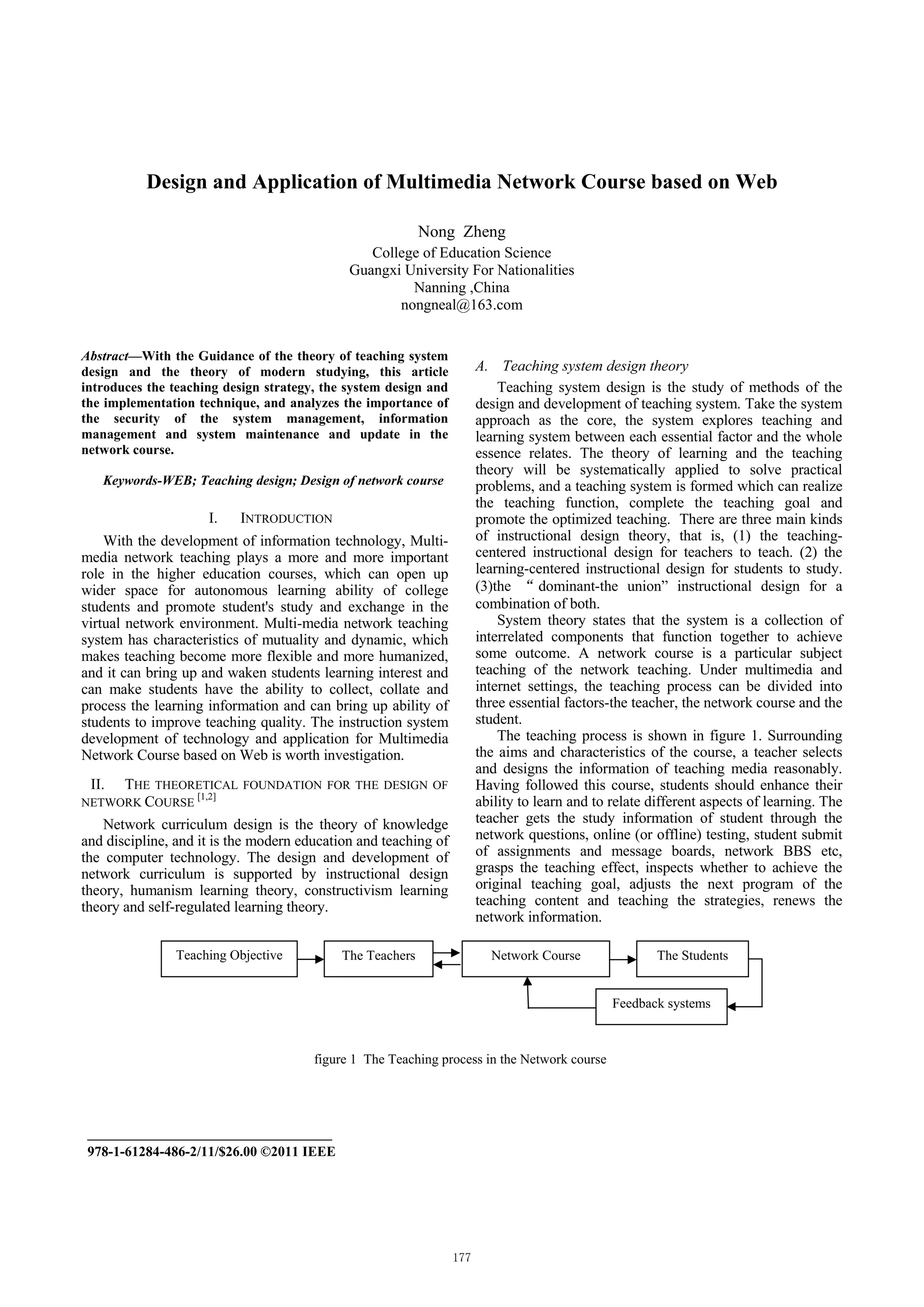 This document discusses the design and application of a multimedia network course based on web. It introduces:
