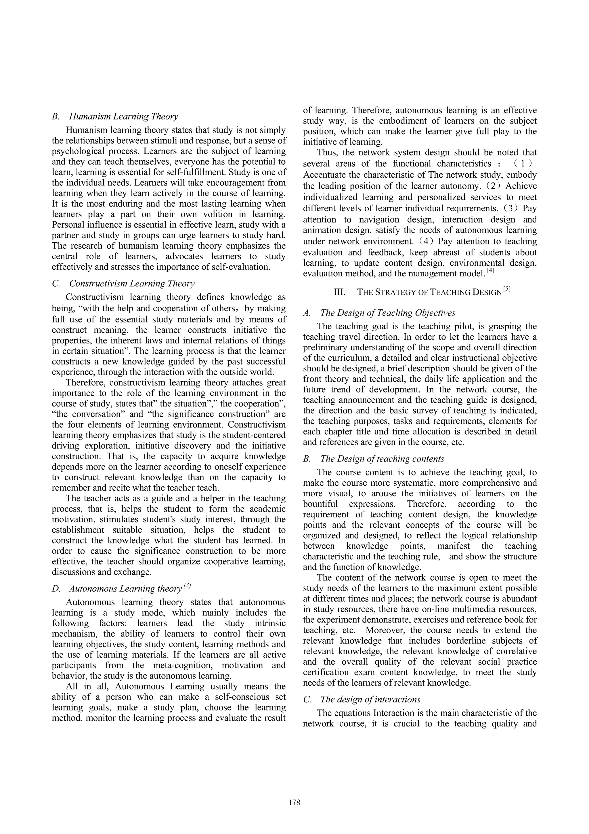 3) The importance of system design for the network course, including reasonable organization of teaching media, feedback mechanisms, and attention to navigation, interaction and personalization.