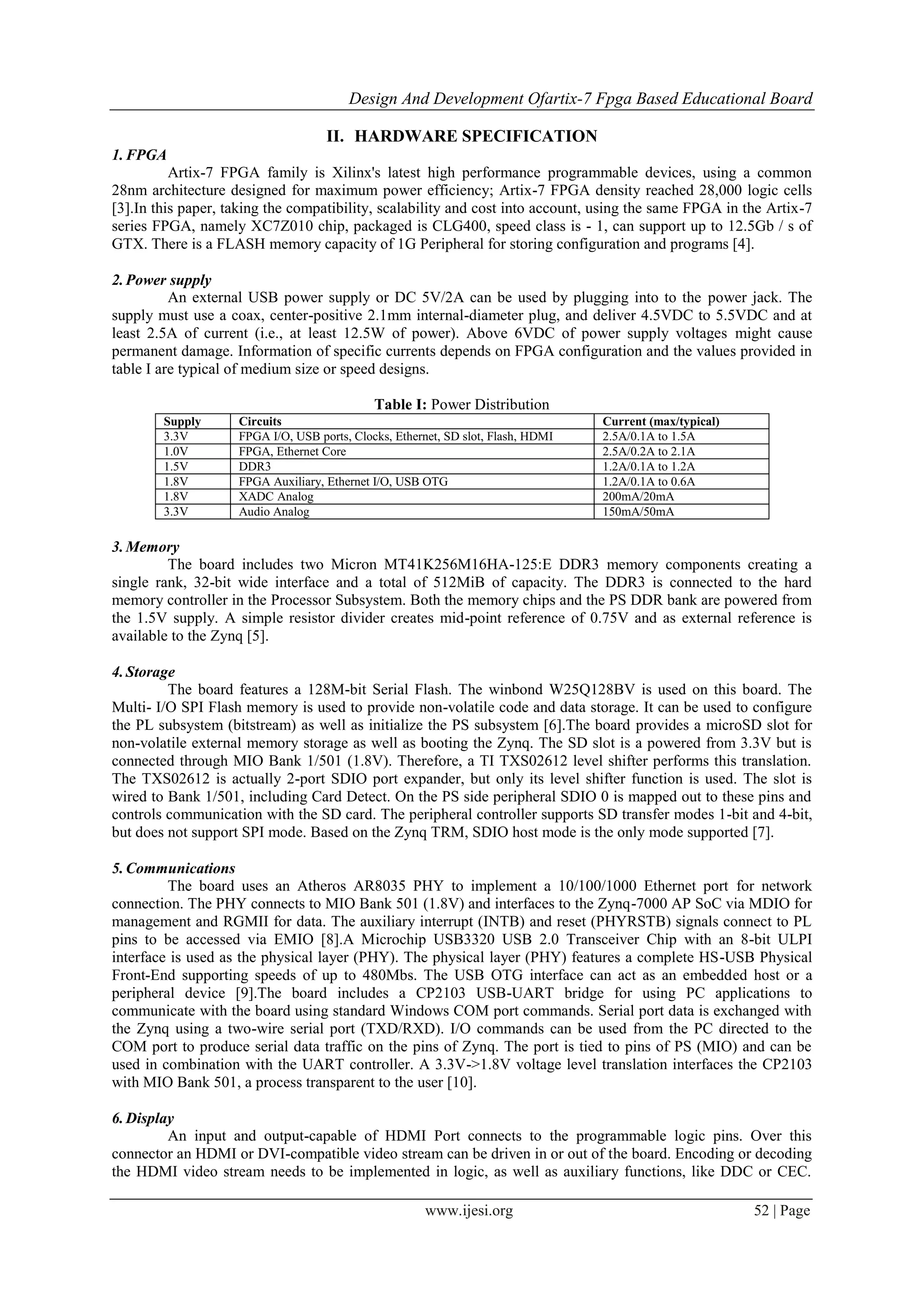 The paper introduces the design and development of a low-cost, high-performance educational FPGA board based on the Xilinx Artix-7 family, aimed at enhancing student learning in digital signal processing. This board provides a practical platform for students to perform experiments in hardware implementation and design, incorporating various interfaces for extensive learning applications. It outlines hardware specifications, power requirements, memory storage, and communication protocols, demonstrating its capability for both basic and advanced exercises in digital logic and computer organization courses.