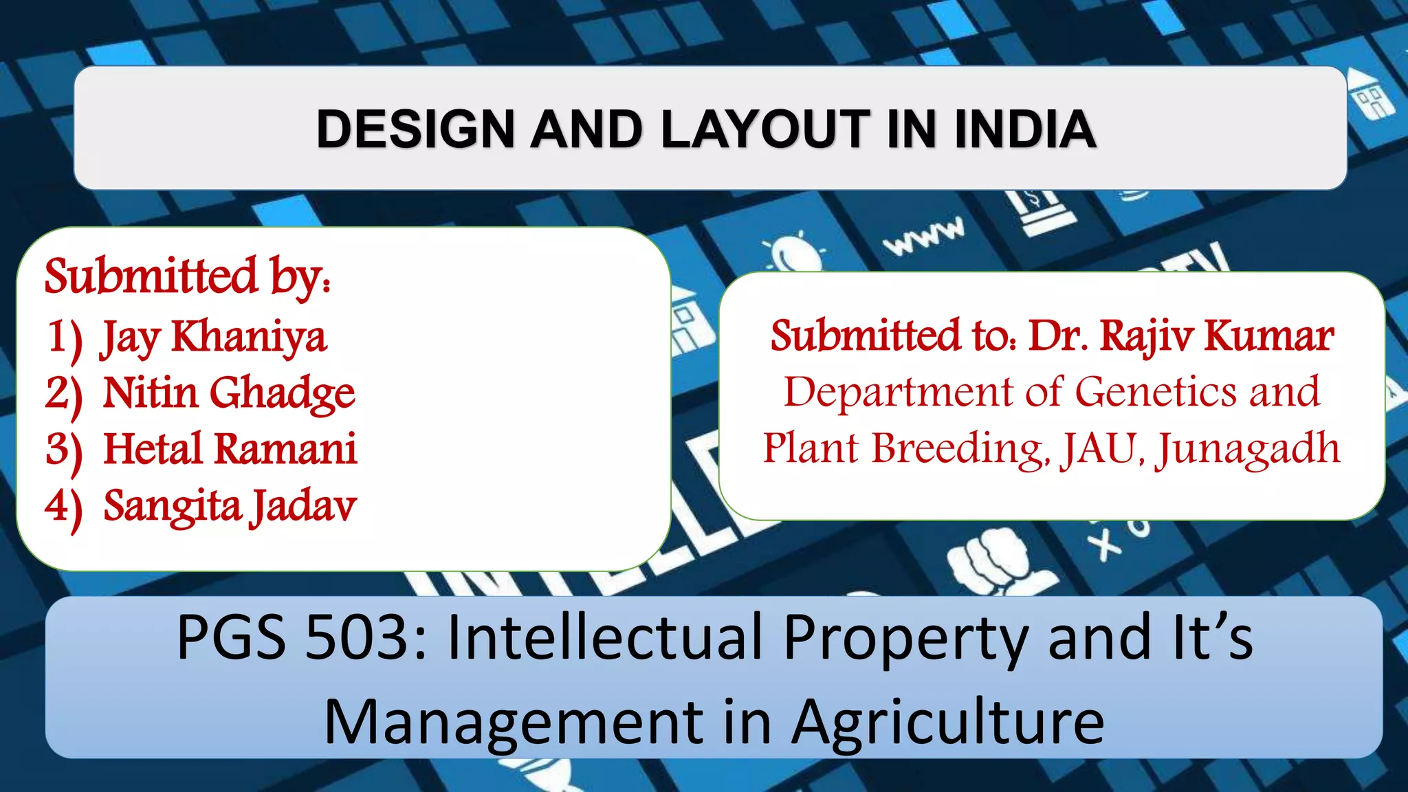 The document discusses the history and principles of industrial design in India, emphasizing its aesthetic and ornamental value. It explains the legal framework, including the Designs Act of 2000, which governs design registration and protection, and outlines the requirements for registration, infringement, and the application process. Additionally, it covers the Semiconductor Integrated Circuits Layout-Design Act of 2000 and its provisions for the protection of layout designs.