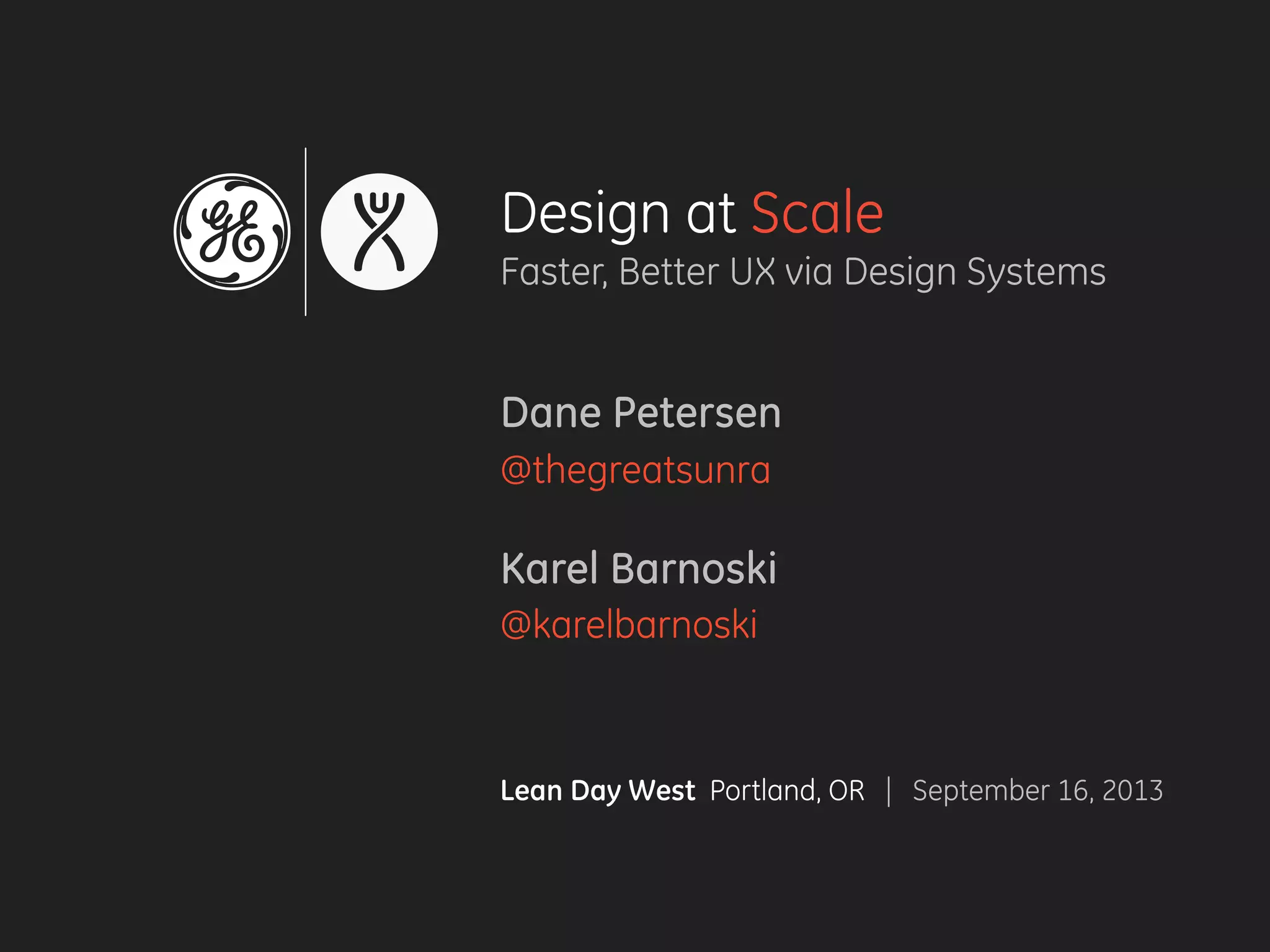 This document outlines an agenda for a workshop on design systems and rapid prototyping. It introduces Dane Petersen and Karel Barnoski, who work on design at GE. The workshop will include sketching an app concept, learning about design systems, and using a design system template to code a prototype. Participants will sketch a "Smart Home Manager" app, learn how GE uses design systems to standardize experiences across products, and code their sketch using the Industrial Internet Design System template.