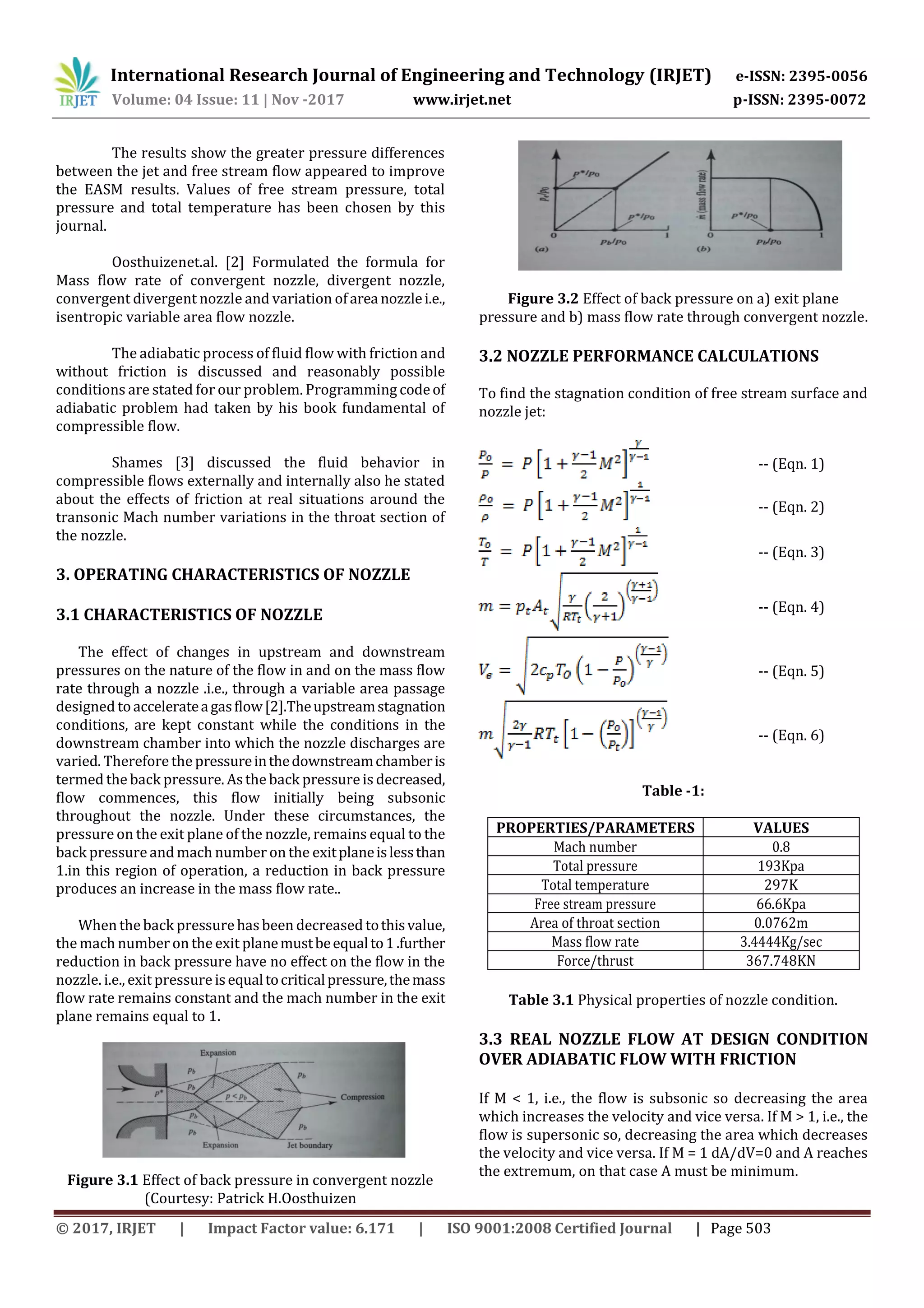 This document summarizes a numerical investigation of flow through an axisymmetric boat tail nozzle at transonic conditions using computational fluid dynamics (CFD). The study analyzed the effects of friction on adiabatic flow and determined a friction factor of 0.001452. CFD simulations using GAMBIT and FLUENT were conducted with a k-epsilon turbulence model to analyze pressure distributions, velocity vectors, and coefficient of pressure plots. Validation against experimental data showed reasonable agreement. The study concluded that CFD can predict nozzle aerodynamics, though turbulence models under predict pressures. Friction was found to impact real flows compared to isentropic assumptions. Future work could analyze shockwaves at Mach 0.8.