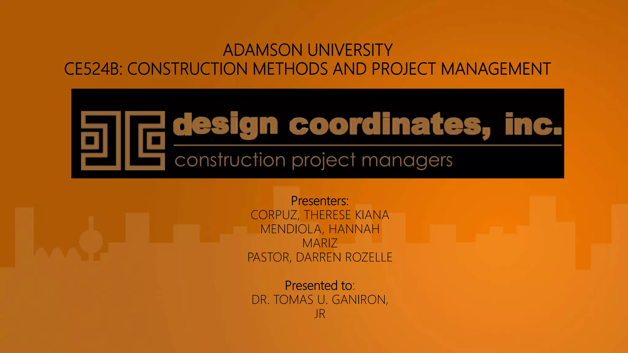 This document summarizes a presentation about the construction of City of Dreams Manila, a large integrated resort complex in Manila, Philippines. It describes the project's vision, budget of 37 billion pesos (840 million USD), stakeholders including Melco Crown Entertainment and PAGCOR, and objectives to deliver luxury experiences and enhance shareholder value. It outlines the planning, execution, monitoring and controlling, and closing of the project which involved building hotel towers, a casino, shopping mall, and theme park and was completed in June 2014 within budget despite challenges encountered.