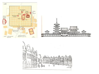This document defines and describes key design elements and principles of architecture. It discusses points, lines, planes and volumes as basic elements that make up designed spaces. It then explains principles of ordering spaces including axis, symmetry, hierarchy, datum, rhythm, and transformation. Axis and symmetry help organize balanced and symmetrical arrangements. Hierarchy uses size, shape or placement to indicate importance. Datum and rhythm create continuity and repetition. Transformation alters designs while maintaining core concepts.