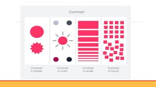 The document provides an overview of design concepts, including the definition of design, its elements (color, line, value, shape, form, texture, and space), and principles (balance, contrast, emphasis, movement, pattern, repetition, variety, and unity) that are essential for creating a successful composition. Each element and principle plays a crucial role in achieving visual impact and guiding the viewer's experience. It concludes by suggesting the creation of a presentation that includes definitions and images for each design component.