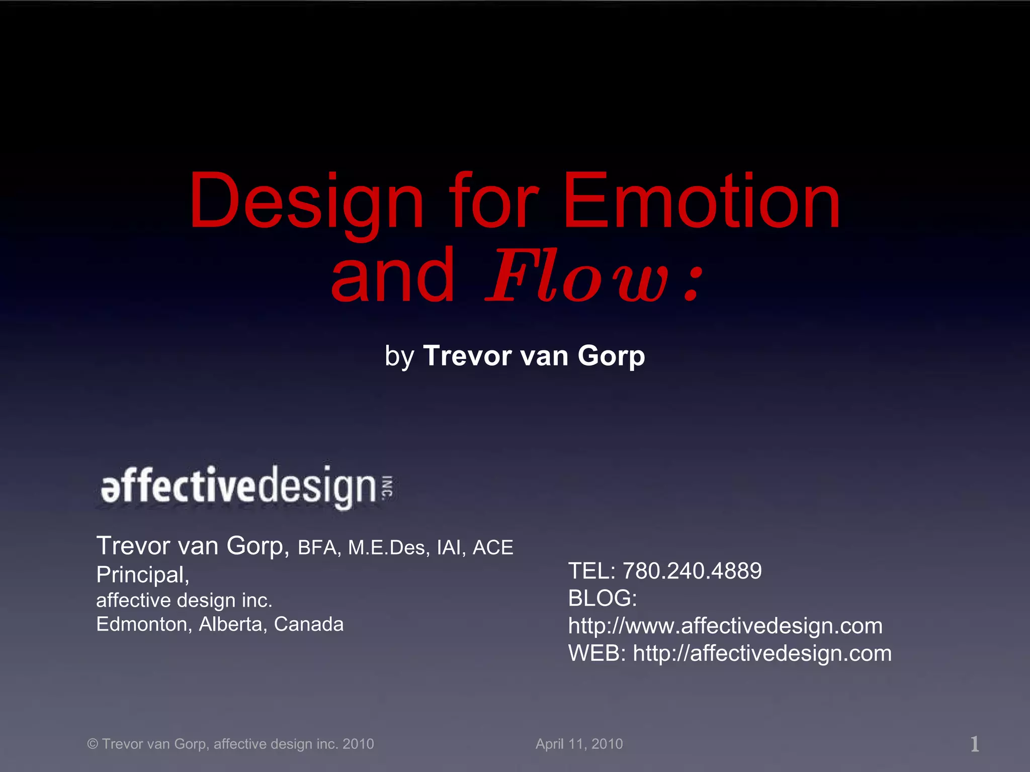 The document by Trevor Van Gorp explores the relationship between emotion, attention, and flow in design, emphasizing how information overload can lead to a 'poverty of attention.' It outlines the dimensions of emotion and methods for fostering flow, such as balancing challenge with user skill level and providing immediate feedback in user interactions. Ultimately, it advocates for designing experiences that enhance user engagement through attention management and emotional connection.