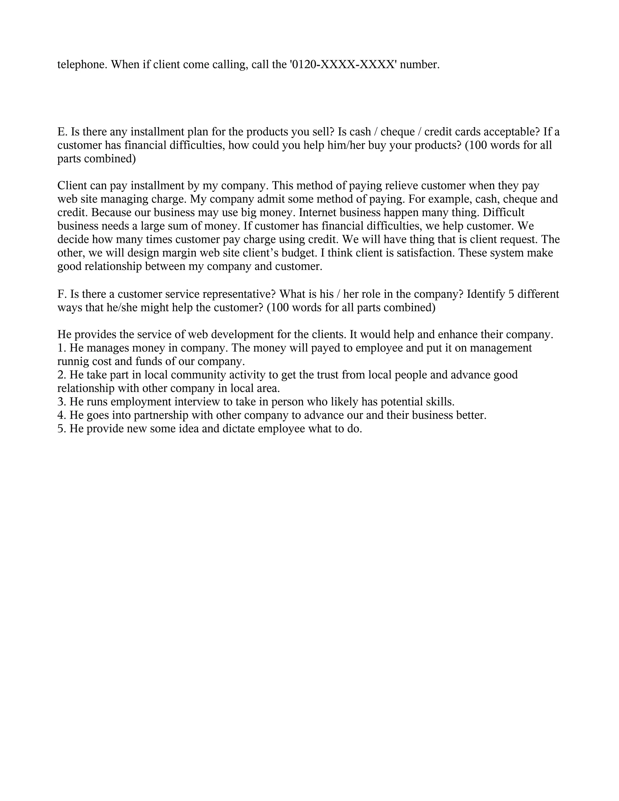 Installment plans are available to relieve customer costs. The company accepts various payment methods and will work with customers' budgets. A customer service representative manages finances, builds local relationships, hires staff, partners with other companies, and provides ideas/direction.