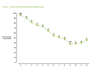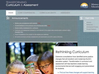 The document discusses trends in education including collaborative learning, mobile learning, social media, and shifting teacher roles. It provides perspectives from experts on how space shapes learning and engagement. Key themes discussed are the importance of relevance, authenticity, and depth in learning; competency-based curriculums focused on thinking, communicating and social responsibility; and transforming learning spaces and classrooms to support different learning styles in the digital age.