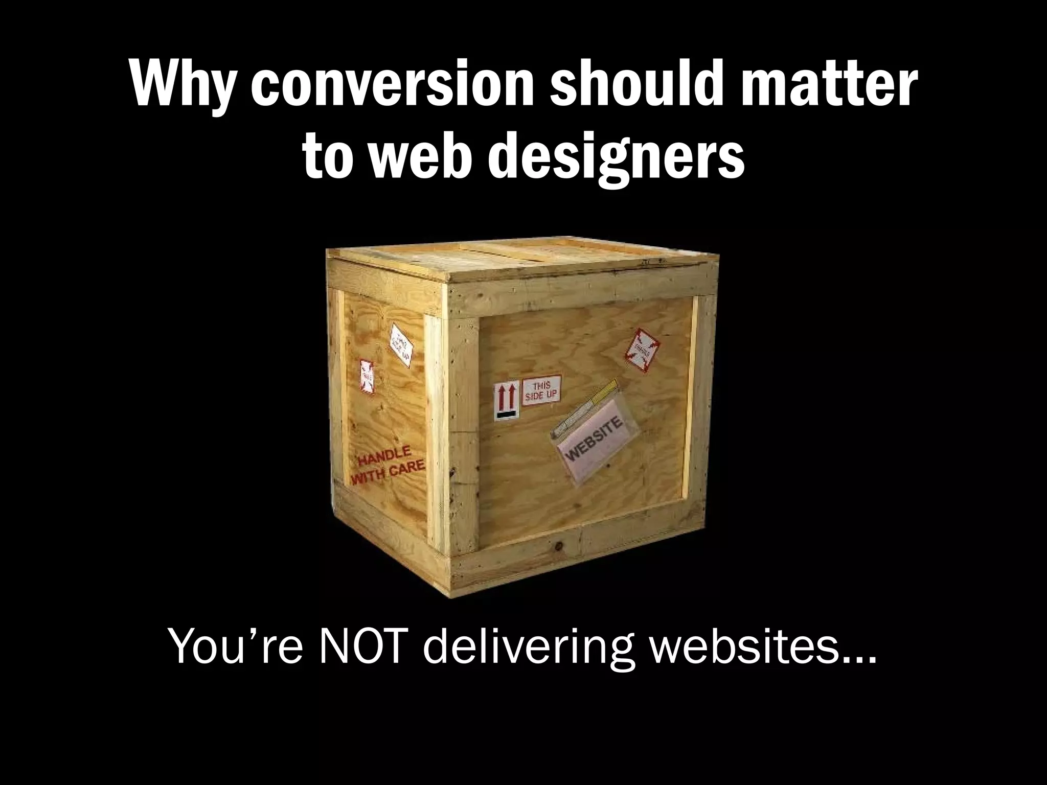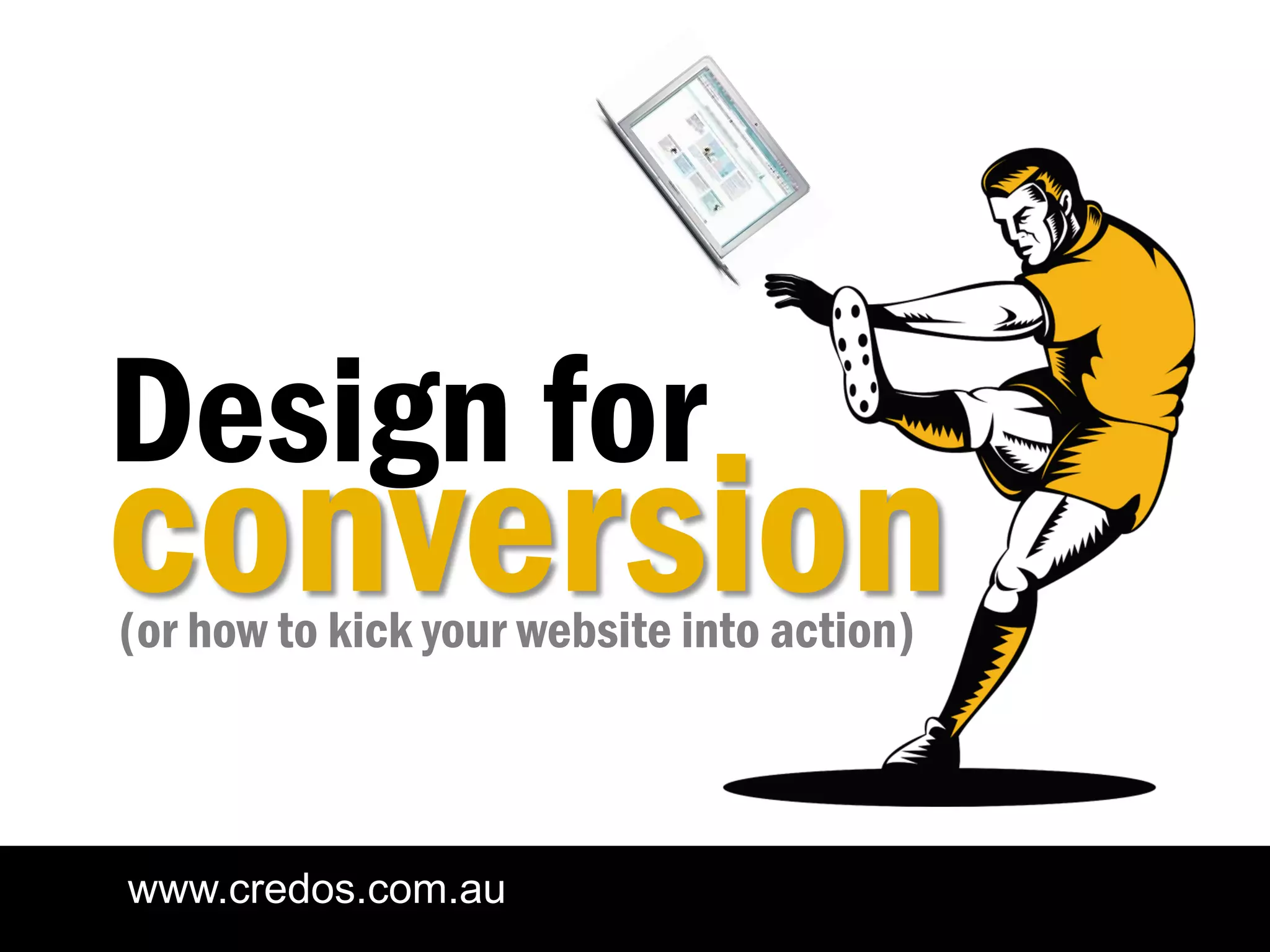 The document emphasizes the importance of designing websites for conversion, focusing on achieving specific business goals rather than merely aesthetic appeal. It outlines strategies for attracting the right audience, engaging their interest, and effectively converting that interest into action, while providing measurable objectives and actionable insights. Key tactics include understanding customer needs, using compelling calls to action, and optimizing website elements to enhance user experience and increase conversion rates.