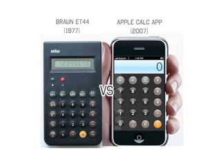The document presents insights on design principles and the importance of user-centric design in the product development process. It emphasizes that design should cater to user needs while also being innovative, functional, and environmentally friendly. Notable quotes from influential figures highlight the significance of perspective in achieving successful design outcomes.