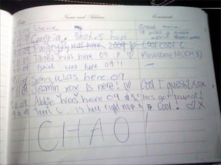 The document discusses participatory design strategies for museums, emphasizing the importance of visitor engagement through community creation, questioning, and diverse motivations. It outlines techniques for enhancing participation, including asking good questions and promoting dialogue around museum content. The author, Nina Simon, also highlights examples of successful participatory initiatives and the need for museums to evolve into platforms for collaboration and sharing.