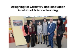 The document discusses the evolution of participatory action research and design methodologies for informal science learning, emphasizing the importance of user-centered design in creating accessible exhibits for children and families. It outlines the methodology used, including design thinking and workshops, along with essential design considerations for safety, usability, and ethical standards. The goal is to create interactive exhibits that facilitate data collection while being engaging and inclusive for all visitors.