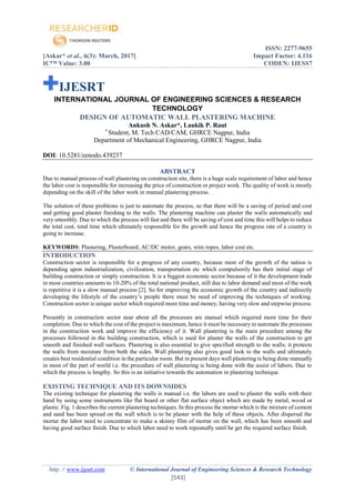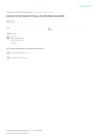 The document discusses the design of an automatic wall plastering machine aimed at automating the manual plastering process in construction, which is typically labor-intensive and time-consuming. By reducing labor costs and improving plastering quality, the machine seeks to enhance efficiency in the construction sector, which is crucial for economic growth. Key objectives include reducing human labor, making the machine portable, and minimizing material wastage while ensuring a smoother plaster finish.