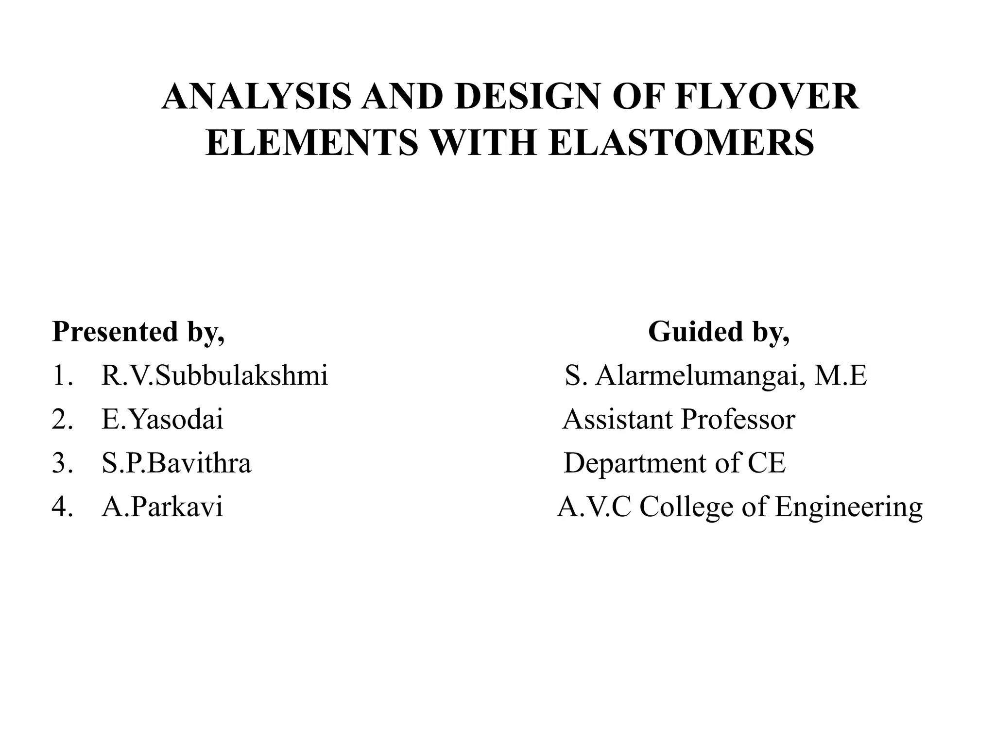 The document presents a detailed analysis and design of a flyover structure using elastomers to enhance seismic resistance, aimed at mitigating traffic congestion at a railway crossing. The methodology includes incorporating a base isolation system with elastomeric bearings to protect the structure from earthquake-induced stresses. It outlines project specifics, structural components, and design methodologies, emphasizing the importance of developing earthquake-resistant infrastructure to ensure safety and functionality.