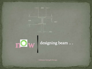 The document discusses the design and analysis of pre-stressed concrete structures, focusing on the ultimate strength concepts for singly and doubly reinforced sections. It outlines the methods for calculating design loads, analyzing internal moments, and determining steel reinforcement requirements based on varying conditions and codes. Important considerations include the stress-strain relationships, failure modes, and specific analytical procedures for rectangular beam designs.
