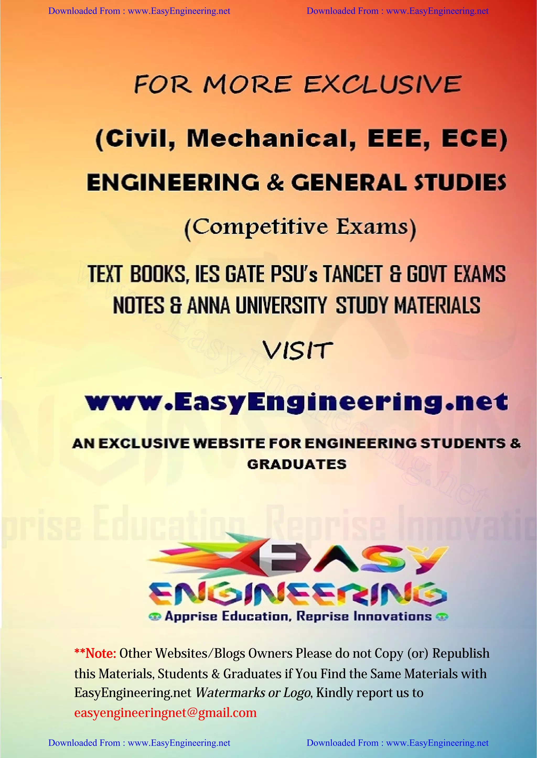 The document repeatedly states that content was downloaded from www.EasyEngineering.net and warns others not to copy or republish the content without permission. It provides attribution to www.EasyEngineering.net over 100 times.